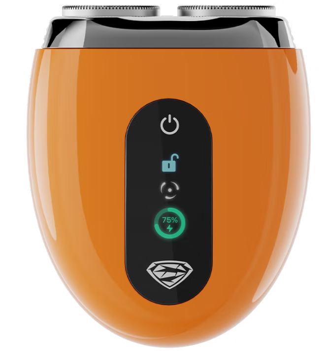 旋转式弹性刀头;IPX7级全身水洗;高性能锂电池;1小时快速充电。
