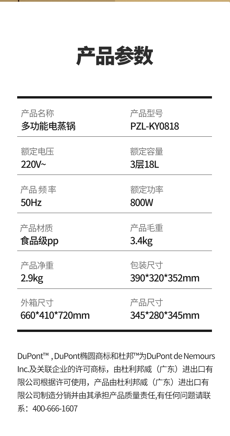 杜邦/DUPONT 电蒸锅 PZL-KY0818