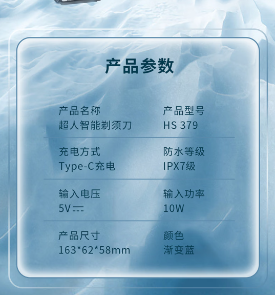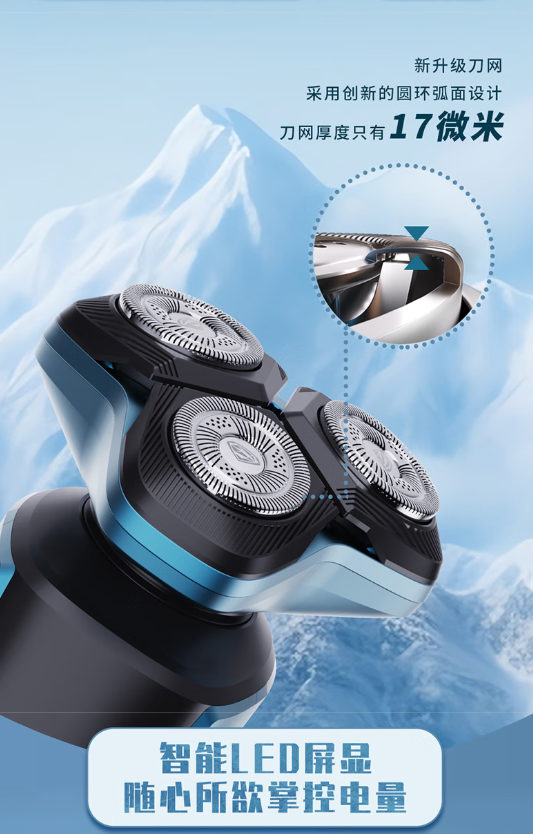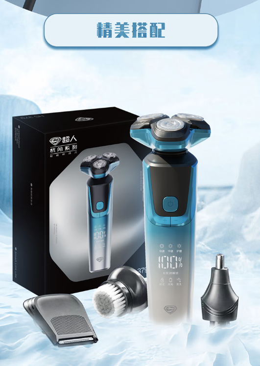超人 剃须刀 【渐变蓝】智能数显+5D贴面 HS379