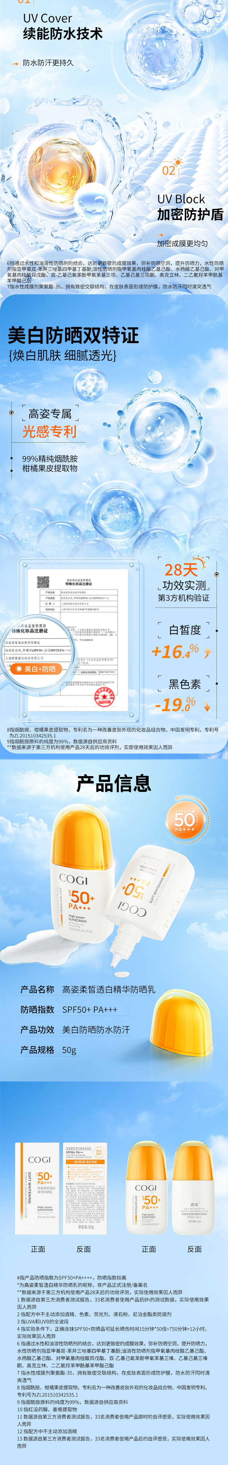 高姿 柔皙透白精华防晒乳 SPF50+PA+++50g