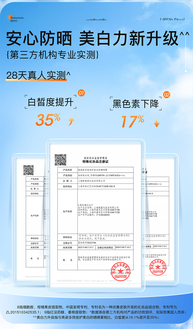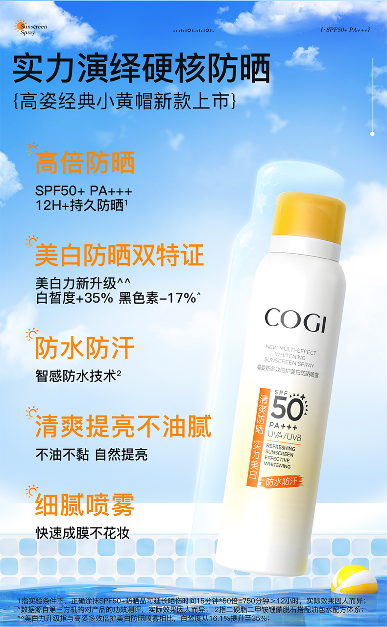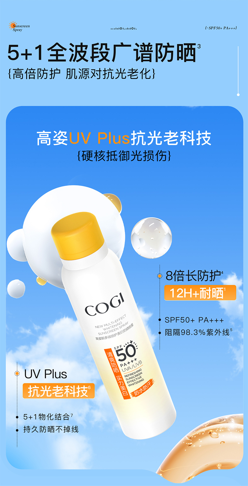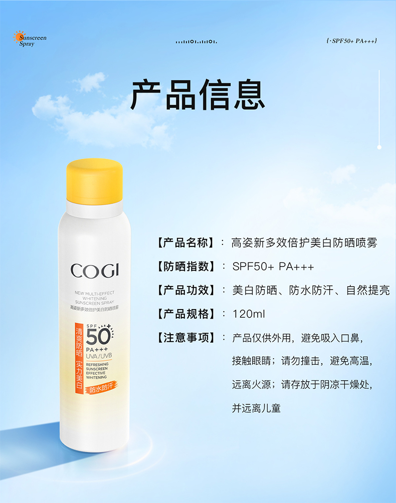 高姿 新多效倍护美白防晒喷雾SPF50+PA+++ 120ml*2瓶