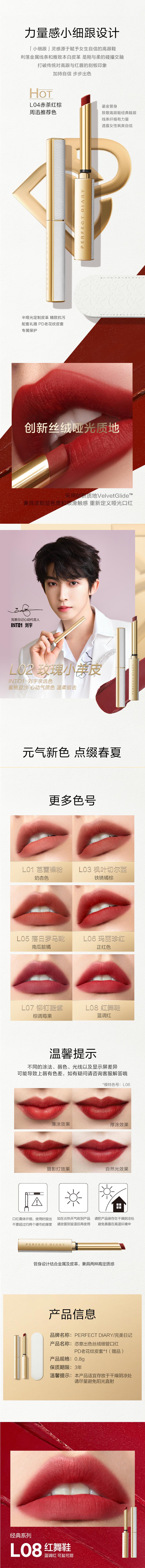 完美日记 L08红舞鞋 恣意出色丝绒细管口红 蓝调红 0.8g