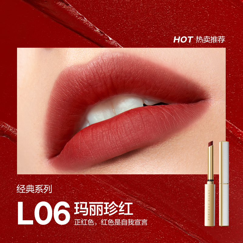 完美日记 L06玛丽珍红 恣意出色丝绒细管口红 正红色 0.8g