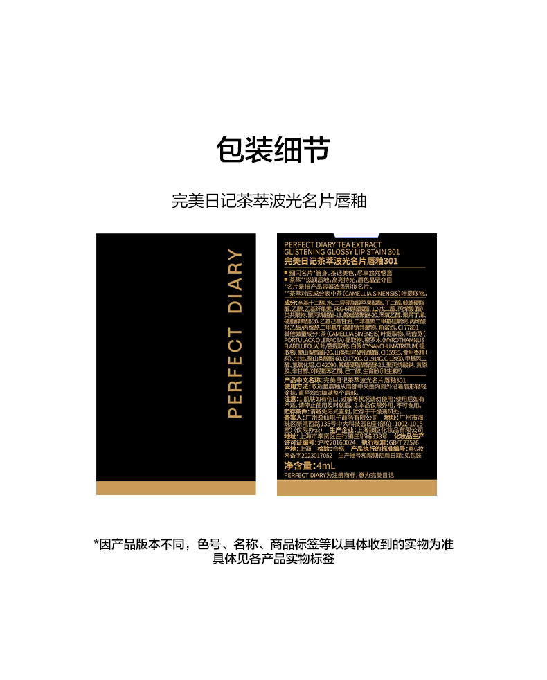 完美日记 306 涩梅乌龙 茶萃波光名片唇釉 4ml