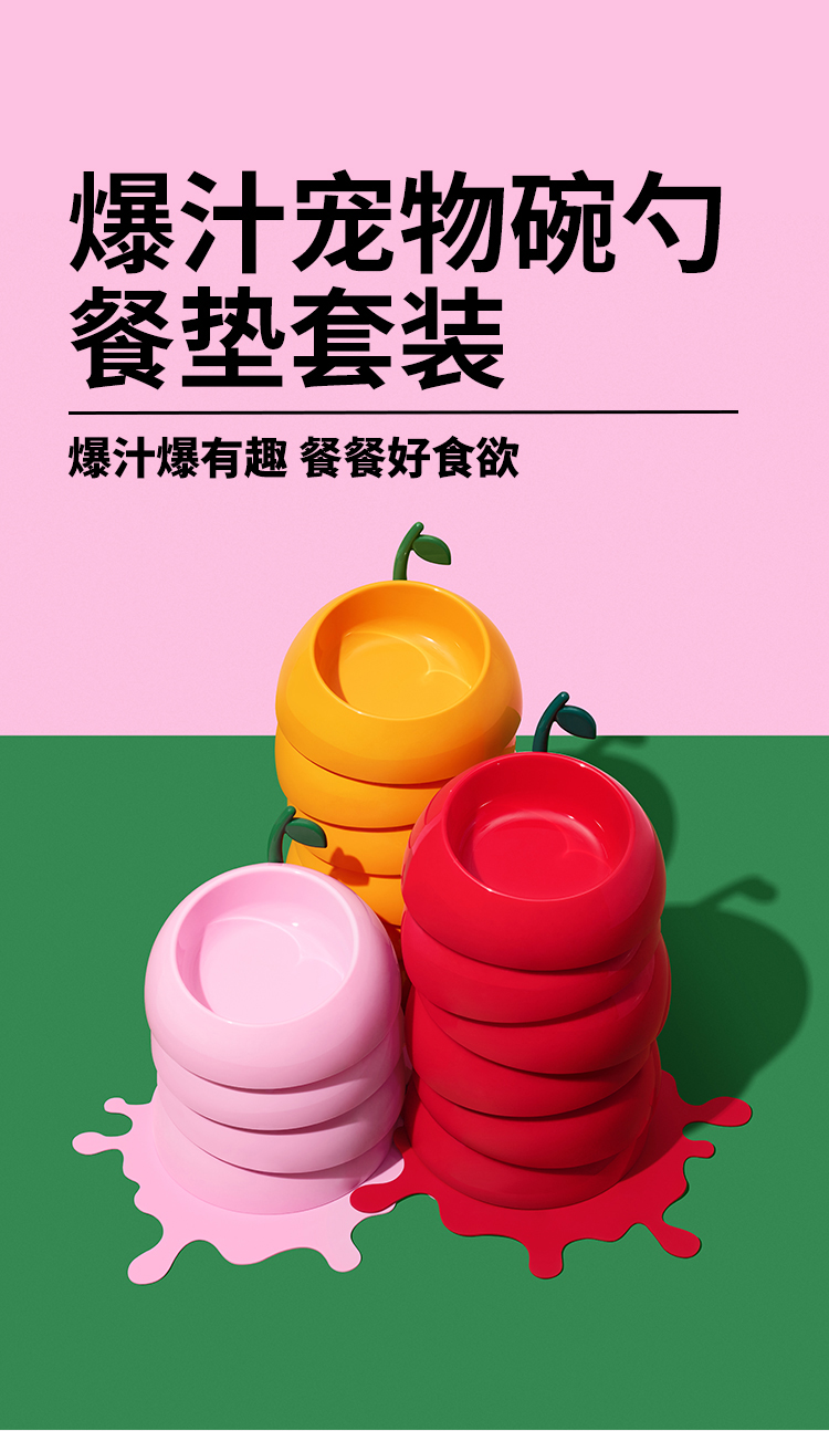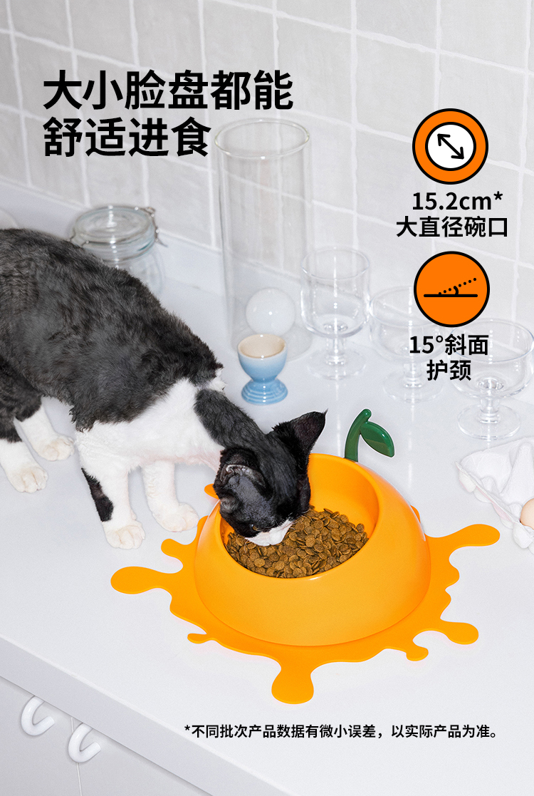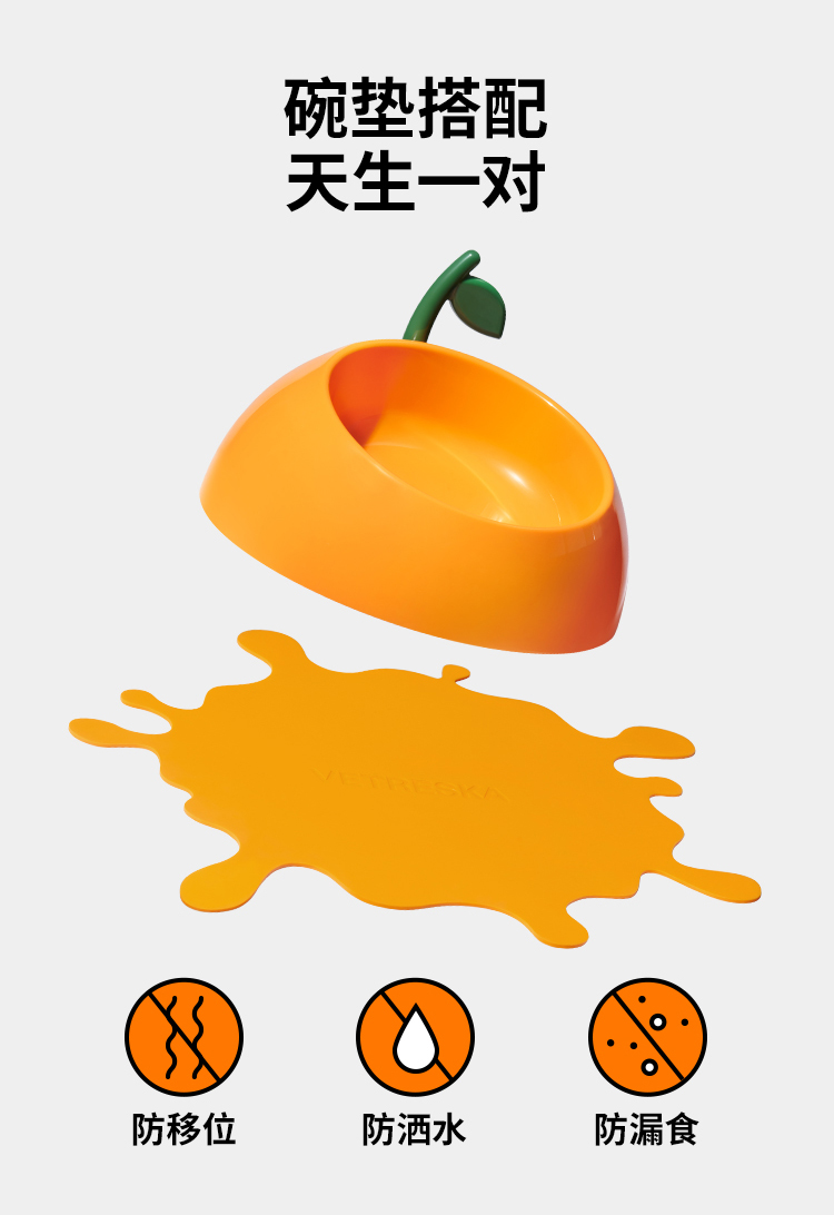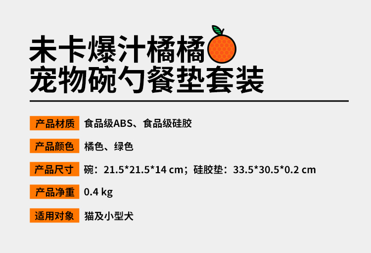 未卡 爆汁橘橘宠物碗勺餐垫套装 M-中型