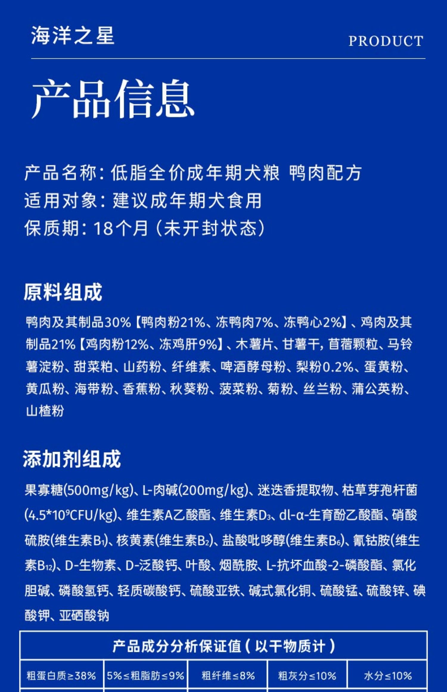 海洋之星 低脂体控鸭肉犬粮 10kg